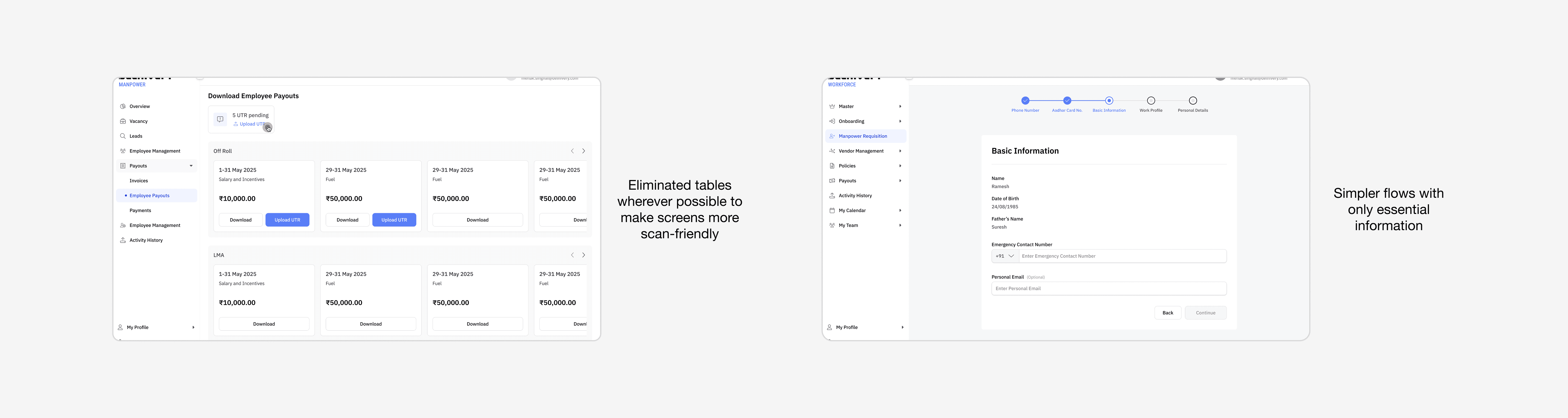 • A Manpower (Vendor Portal) to empower manpower vendors with data, visibility, and ownership