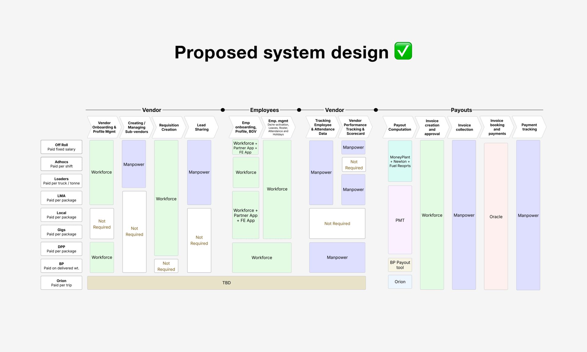 Across regions and vendor types, processes like requisition sharing, onboarding, payouts, and employee tracking were being handled through a patchwork of tools, emails, and WhatsApp groups with little visibility and zero consistency.
