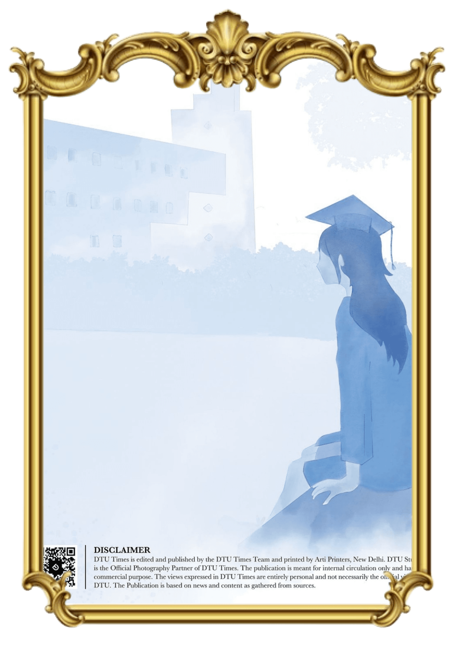 This illustration, created for the DTU Times graduation edition cover, captures a student soaking in the bittersweet moment of farewell and reflection.