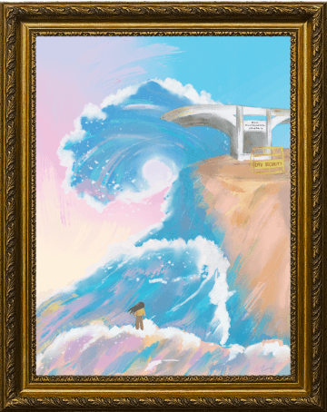 A pastel-hued illustration capturing a girl’s innocence and purity as she bravely faces the storm ahead (DTU), unafraid of challenges.