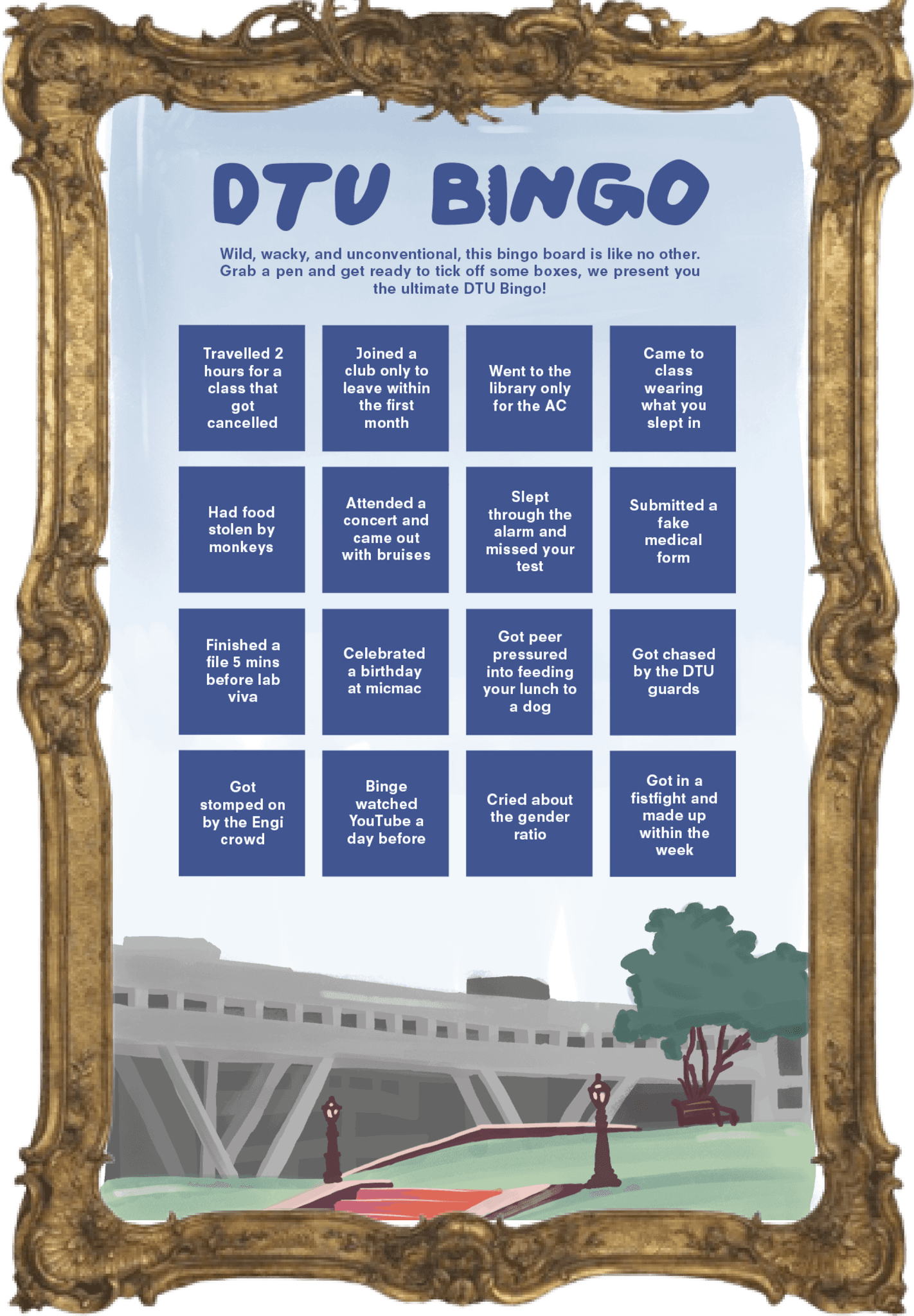 The "DTU Bingo" was a fun segment designed to engage DTU students. I personally love the pastel illustration of DTU at the bottom.