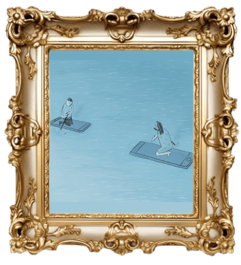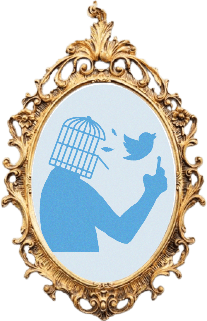 Twitter bird attempting to fly while the person remains absorbed in their phone. It symbolizes how social media can confine our thoughts, even as we seek freedom.